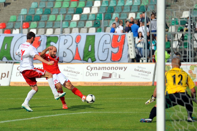 Ostrovia zagrała otwartą piłkę, dzięki czemu mecz toczył się w szybkim tempie. Nasi piłkarze dość łatwo przedostawali się pod pole karne. W 27. minucie po akcji Przemysława Mizgały piłka trafiła do Łukasza Matusiaka, a ten uderzył z ostrego kąta po długim rogu i otworzył wynik spotkania. - Ta bramka cieszy mnie bardzo, gdyż pierwszy raz na meczu był mój syn - powiedział po spotkaniu uśmiechnięty kapitan Zagłębia.