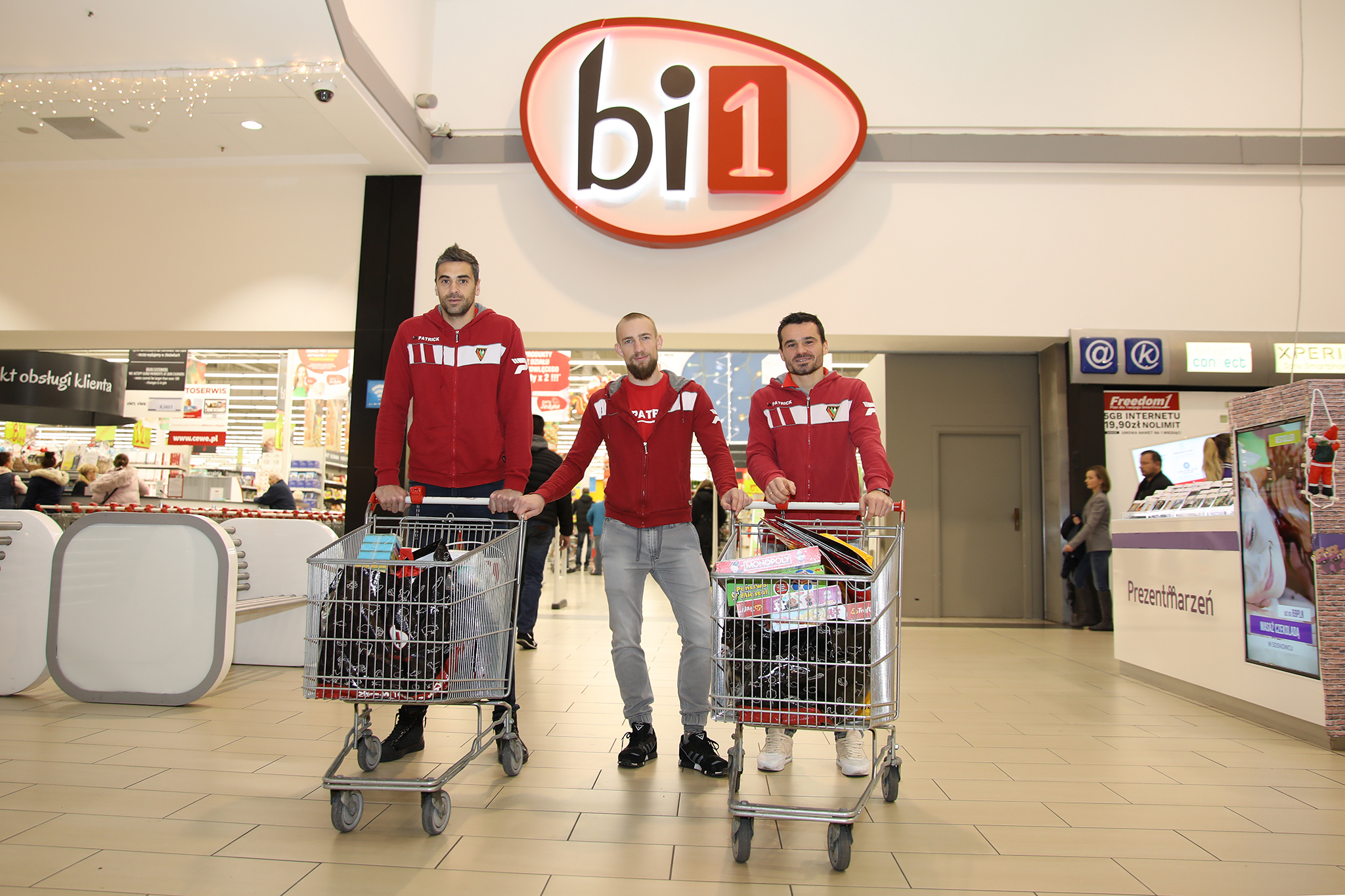 Szymon Pawłowski oraz Tomasz Nowak. Dzięki uprzejmości Pani Dyrektor Agnieszki Sumy, mogliśmy całą paczkę skompletować w hipermarkecie b1. Po zapełnieniu dwóch wózków zawodnicy zabrali się za pakowanie