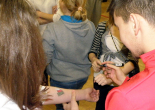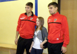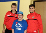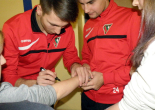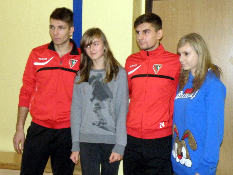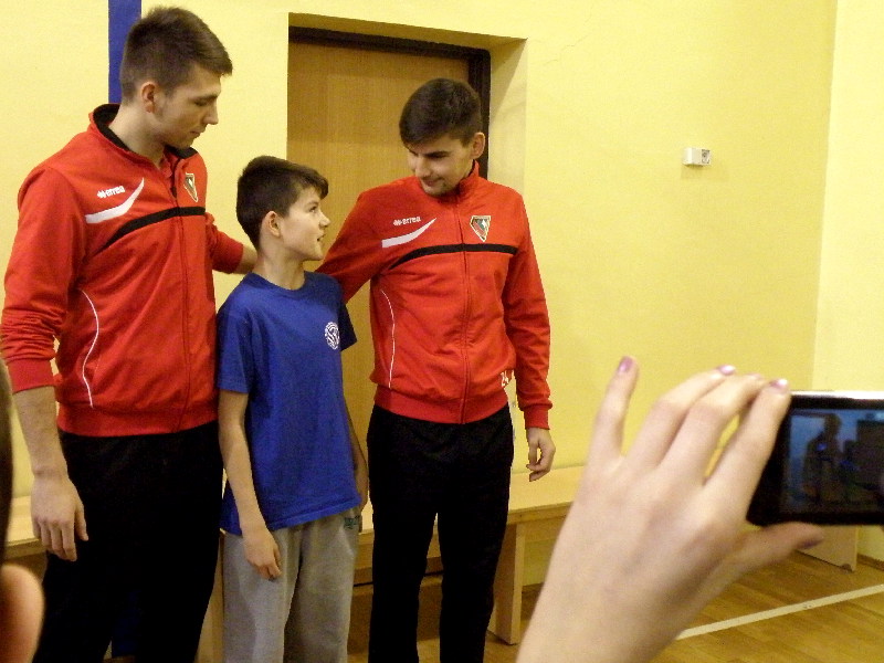 Oczywiście nasi zawodnicy na sam koniec zostali otoczeni przez uczniów i rozdali kilkanaście autografów, a także pozowali do zdjęć. Warto tutaj dodać, że po krótkim pokazie naszych zawodników, jeden z uczniów zaprezentował niebywałą technikę i niczym swego czasu David Beckham podrzucił sobie piłkę, złapał ją na łączeniu karku z plecami, a następnie nie zrzucając piłki na parkiet ściągnął koszulkę, za co oczywiście został nagrodzony brawami. - Byliśmy pod ogromnym wrażeniem umiejętności - mówił rozbawiony Dawid Weis. - Zawsze jest nam miło, gdy jesteśmy zapraszani na takie imprezy, w szczególności, że tutaj mogliśmy pomóc w zbieraniu pieniążków na WOŚP -dodał Paweł Grzywa.