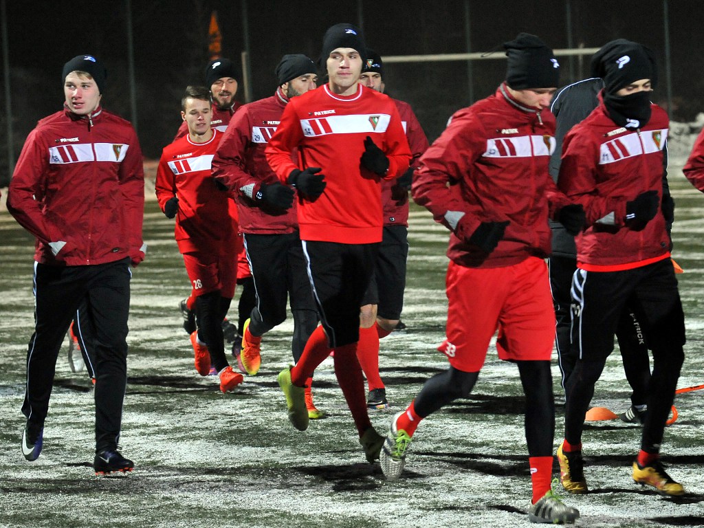 Przedstawiamy zdjęcia z pierwszych zajęć w 2017 roku. Piłkarze ćwiczyli na salce i murawie ze sztuczną nawierzchnią.