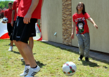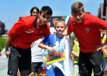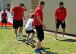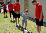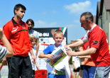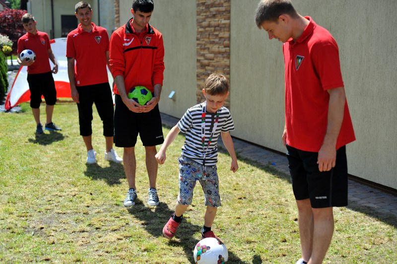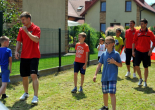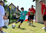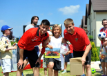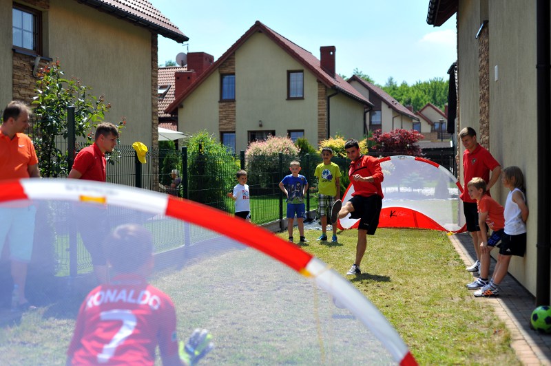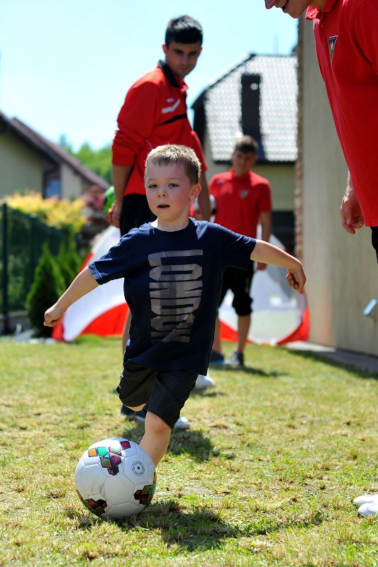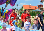 Pierwszy raz na tej imprezie stworzyliśmy punkt Zagłębia Sosnowiec, a w nim miejscowe dzieci zabawiali: Rafał Jankowski, Przemysław Mizgała, Michał Cyganek i Volodymyr Ostroushko. Nasi piłkarze przygotowali sporo atrakcji, oczywiście już na początku zostali otoczeni, więc zagrali krótki mecz. Następnie przeprowadzili konkurs dla bramkarzy, których było aż 3. Nie zabrakło również zawodów strzeleckich i w żonglerce. Najbardziej emocjonujący był jednak konkurs slalomu i strzałów do dwóch rozłożonych bramek, gdzie przeszkodami na boisku byli... nasi zawodnicy. Młodzi piłkarze świetnie sobie radzili, więc dla wszystkich były przygotowane nagrody i upominki. Na sam koniec przeprowadzony został konkurs z wiedzy o naszym klubie i regionie. Zwycięzcą okazał się Dominik, który w nagrodę został zaproszony na pokazowy trening pierwszego zespołu, a podczas niego będzie mógł zwiedzić nasz obiekt.