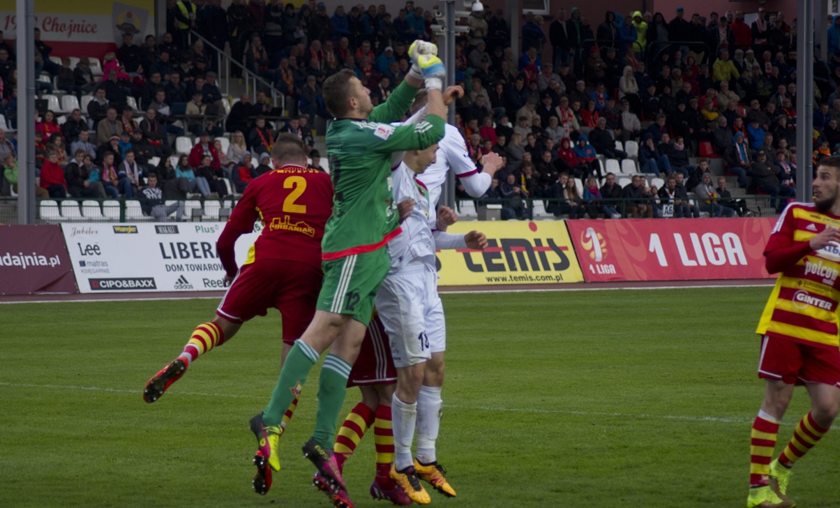 W niedzielę (15 maja) na każdym boisku punkty zostawał u gospodarzy, a do tego wszędzie miejscowi zwyciężali po 2:0. Sandecja Nowy Sącz pokonała GKS Bełchatów, który z meczu na mecz zmierza w złym kierunku jakim jest spadek do II ligi. Dwie bramki dla Sandecji zdobył Arkadiusz Aleksander i to właśnie on pogrążył bełchatowian. Chrobry Głogów okazał się lepszy od Wisły Płock i po 90 minutach trafienia Macieja Górskiego i Kevina Lafrance'a okazały się decydujące w ostatecznym rozrachunku. Rozwój Katowice prezentuje się bardzo źle bez Tomasza Szatana, który doznał urazu i nie może pomóc swojej drużynie na boisku, a ta tym razem przegrała w Siedlcach z Pogonią 0:2 i jedną nogą jest już w II lidze, ponieważ do bezpiecznego miejsca traci 4 punkty, a do zakończenia sezony pozostały trzy spotkania.