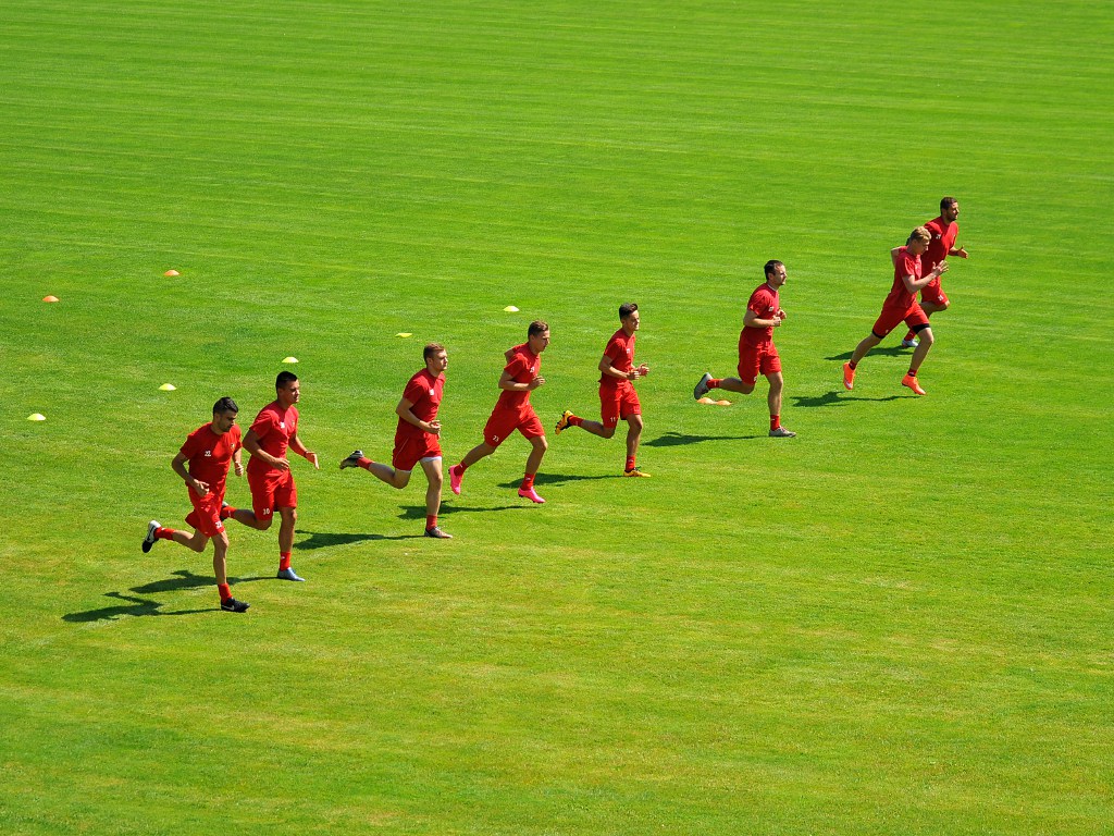 Widać było, że piłkarzom nie pomaga w teście pogoda, gdyż słońce dawało dosłownie popalić (na termometrze w cieniu prawie 35 stopni), a dodatkowo było dość duszno. Nawet pracownicy MOSiR-u, którzy mieli krótką przerwę w koszeniu trawy na głównej murawie (jeszcze raz gratulujemy greenkeeperom najlepszej murawy w I lidze), byli pod wrażeniem wysiłku wkładanego przez zawodników w test.