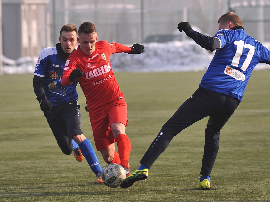 Zagłębie (I połowa): Szumski - Klama, Budek, zawodnik testowany, Udovićić - Milewski, Dudek - zawodnik testowany, Nowak, Handzlik - zawodnik testowany. (II połowa): Fabisiak - Sierczyński, Wiktorski, zawodnik testowany (67. Krzykowski), Pawlik - Bała, Matusiak - Ryndak, Łuczak, Pribula - zawodnik testowany (67. Matić).