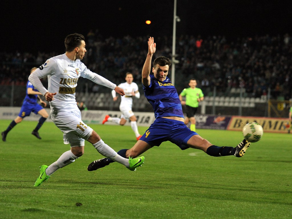 Nasi piłkarze od pierwszych minut wypracowali przewagę i zepchnęli rywala do defensywy. W 9. minucie powinno być 1:0 dla Zagłębiaków. Wojciech Łuczak dośrodkował w pole karne, gdzie świetnie odnalazł się Kamil Wiktorski i uderzył w światło bramki, jednak golkiper gości przeniósł piłkę nad poprzeczką. W 25. minucie wszyscy widzieli piłkę w siatce. Tomasz Nowak zagrał na skrzydło do Martina Pribuli, a Słowak odegrał do Żarko Udovicića, nasz lewy obrońca popisał się piękną podcinką i gdy piłka prawie przekroczyła linię bramkową jeden z obrońców ofiarnie wybił ją w pole gry. Podopieczni Dariusza Banasika zdominowali pierwszą połowę, jednak brakowało kroki nad "i". Goście liczyli na kontry, jednak Zagłębie było świetnie ustawione.
