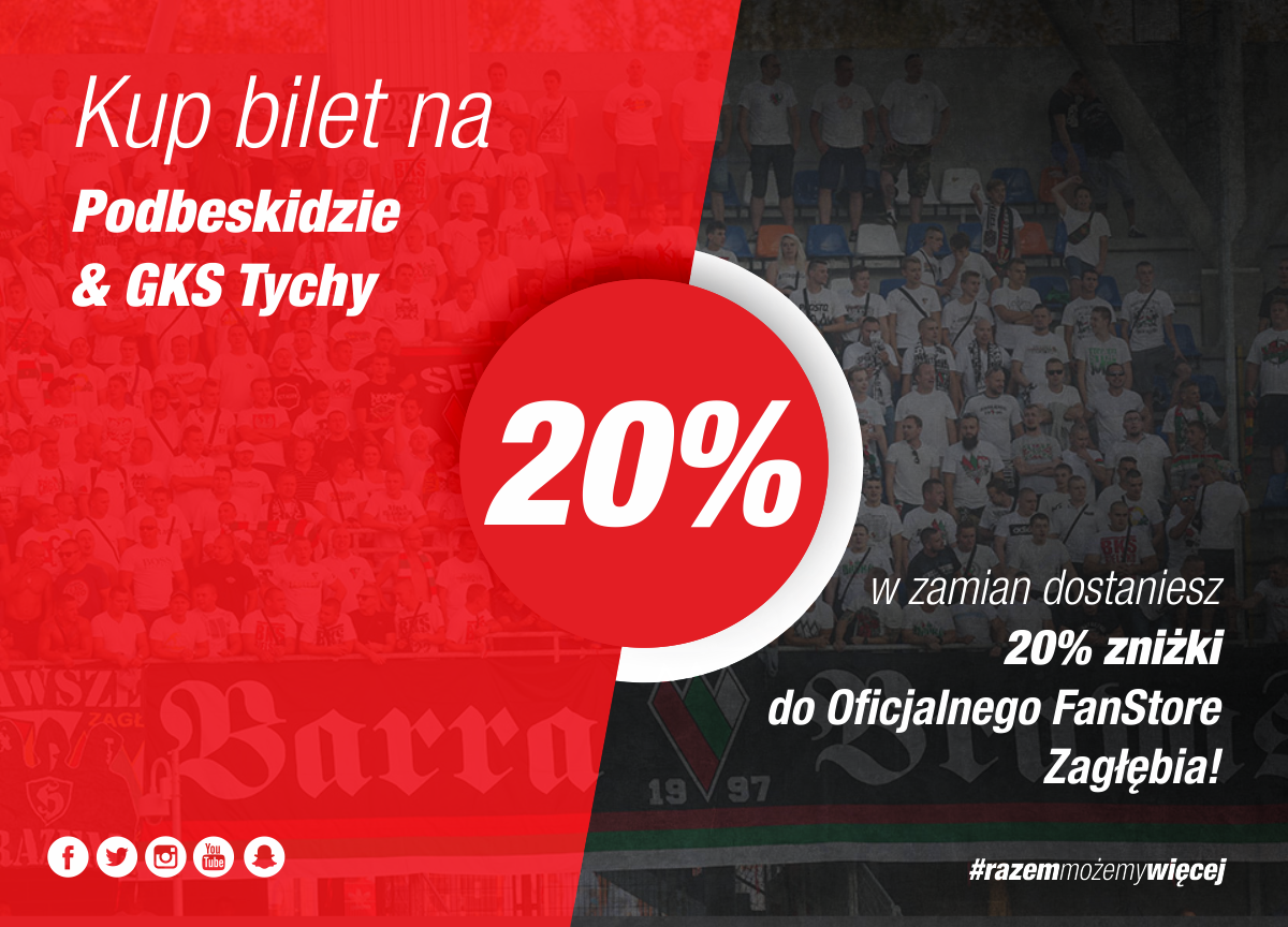 Ze względu na to, iż zainteresowanie biletami jest bardzo duże, zachęcamy do wcześniejszego zakupu wejściówek na dwa ostatnie mecze Zagłębia Sosnowiec. Można je nabyć w restauracji 3Kolory (Sosnowiec, ul. Kresowa 1, Dom Sportowca 1 piętro) oraz w Oficjalnym Sklepie Kibica Fanstore (Sosnowiec, ul. 3 maja 11)