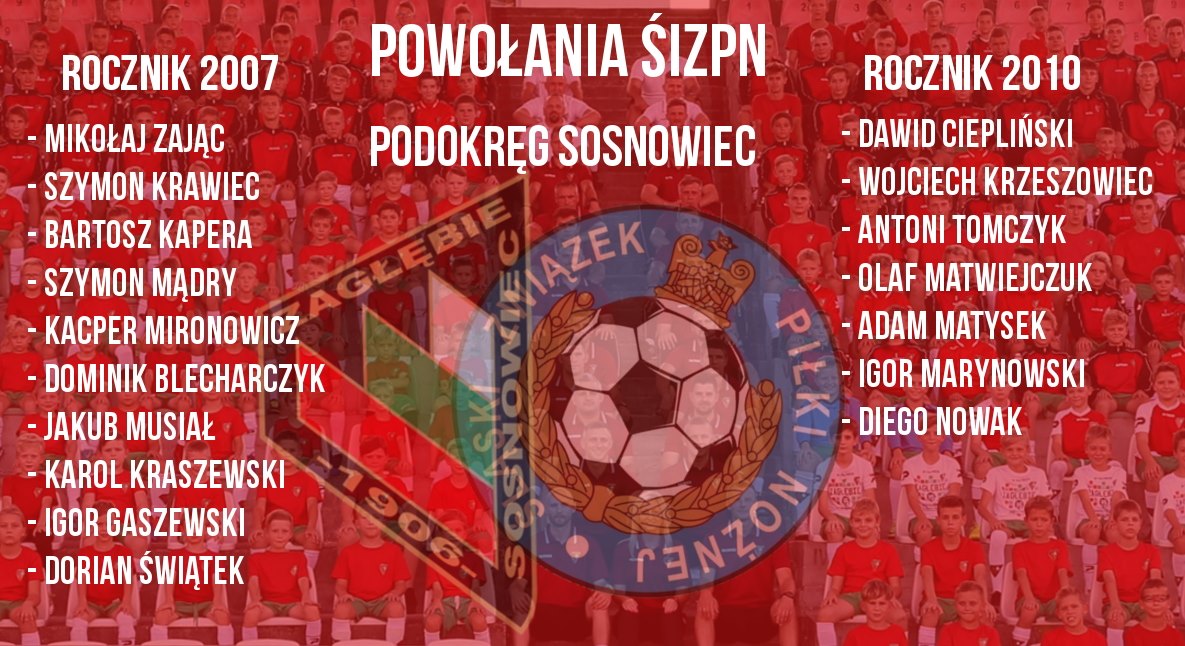 Wyróżnieni zawodnicy z rocznika 2010: Dawid Ciepliński, Wojciech Krzeszowiec, Antoni Tomczyk, Olaf Matwiejczuk, Adam Matysek, Igor Marynowski oraz Diego Nowak. Konsultacja szkoleniowa odbędzie się 11.10.2019 od godziny 19:15 na boisku Zagłębia Sosnowiec (sztuczna nawierzchnia).