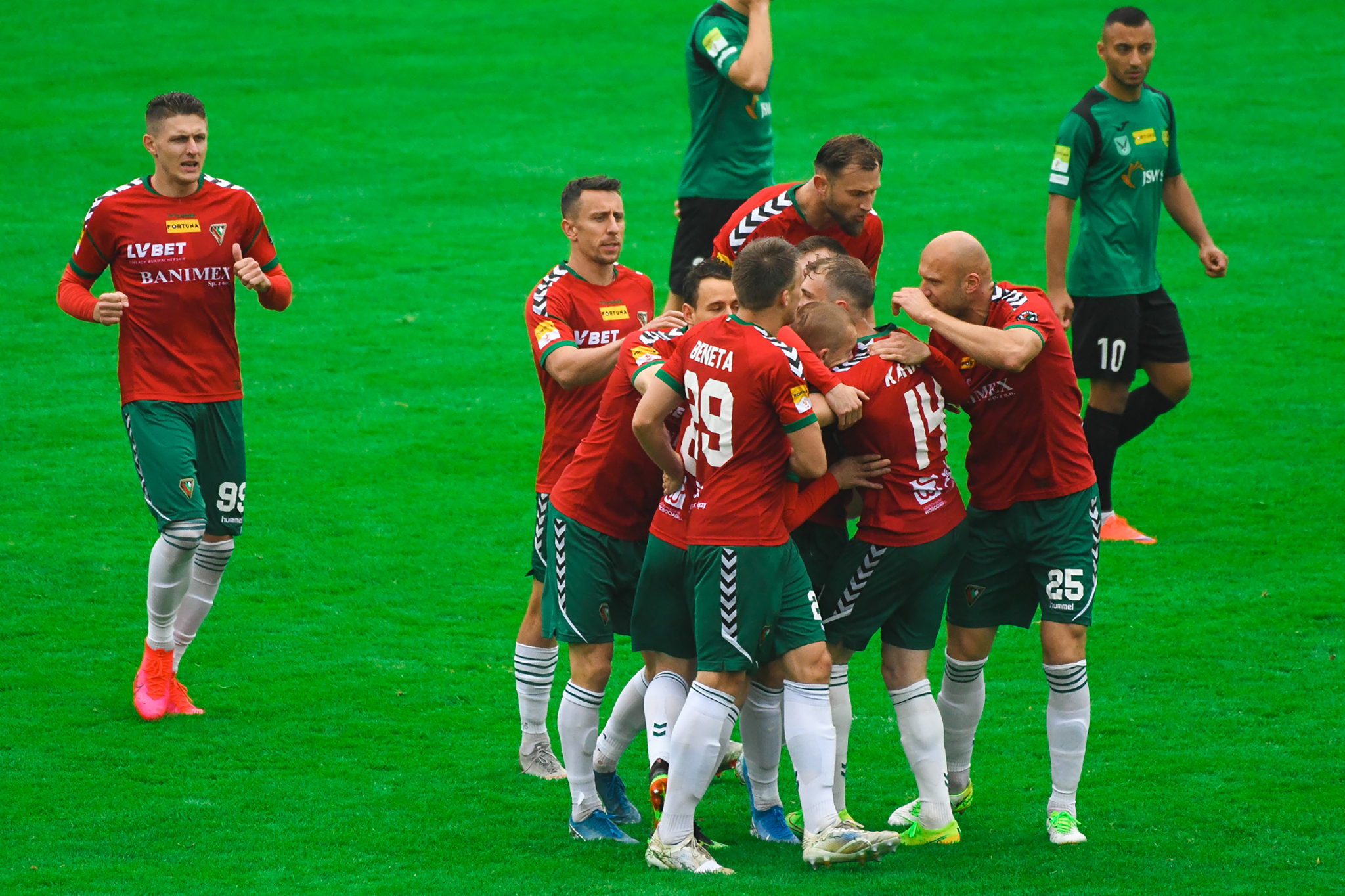 - Musimy złapać serię, wygrać kolejny mecz, by liczyć się w walce o baraże - mówił po meczu w Jastrzębiu Filip Karbowy, który popisał się efektownym golem otwarcia, zdobytym z rzutu wolnego.