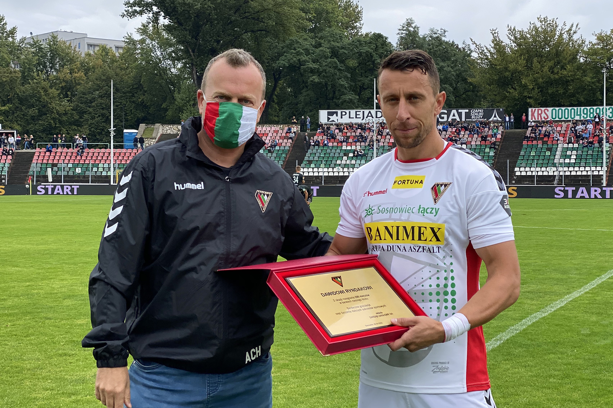 Wychowanek Zagłębia w poprzednim sezonie w meczu Zagłębie - Warta Poznań (0:2) trafił do ekskluzywnego Klubu 200. Później zagrał w spotkaniach z Chojniczanką, Stalą Mielec i Wigrami Suwałki. W nowych rozgrywkach zaliczył oba mecze, czyli potyczki z Bruk-Bet Termaliką i Tychami. W sumie, Dawid Ryndak ma na koncie 206 meczów w sosnowieckich barwach. Mecz z tyszanami był dobrą okazją, by wręczyć paterę Ryndakowi i jak się później okazało przedmeczowa oficjałka przyniosła szczęście zawodnikowi, a przede wszystkim całej drużynie.