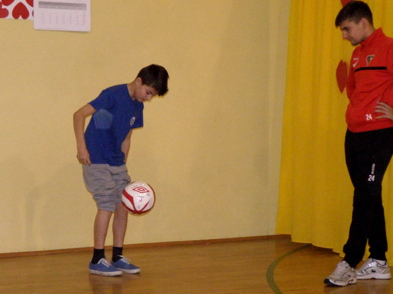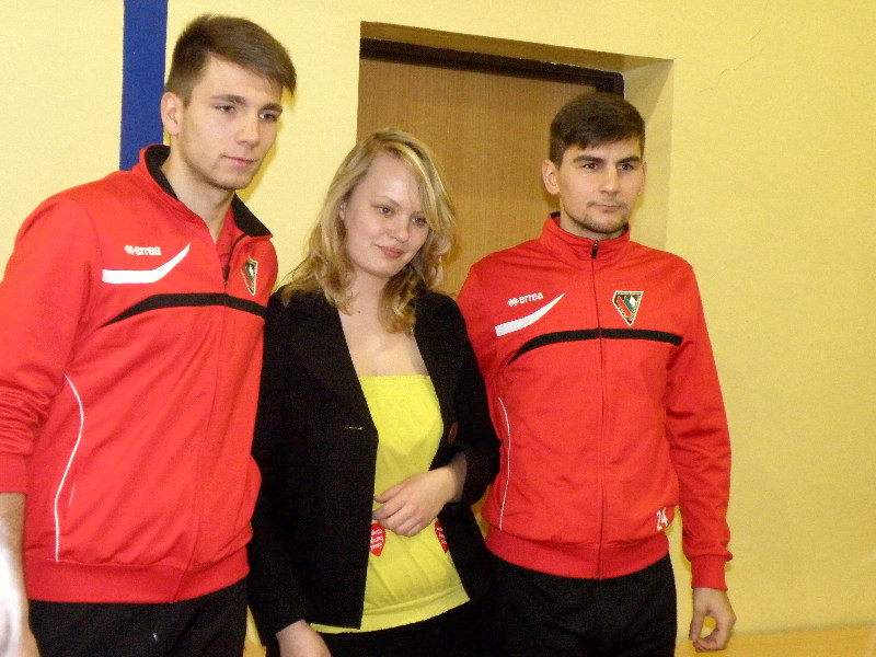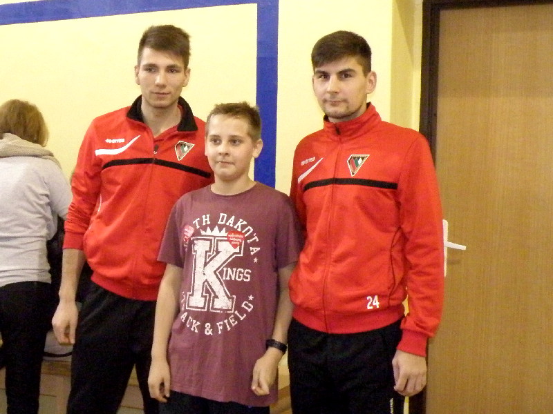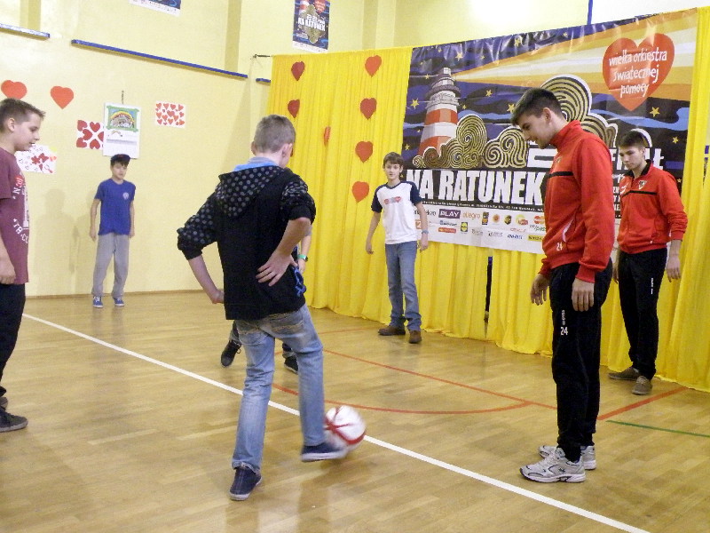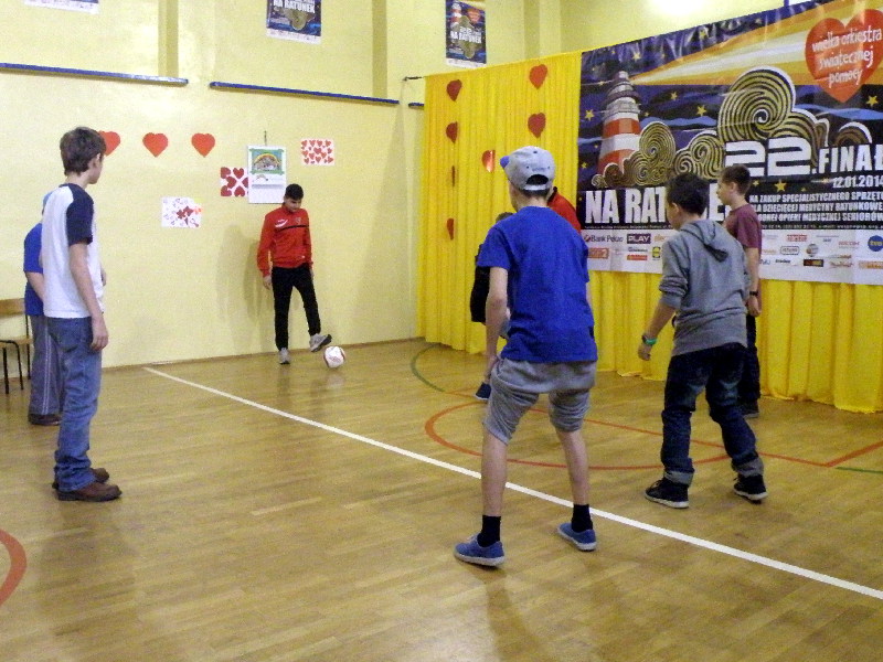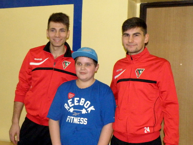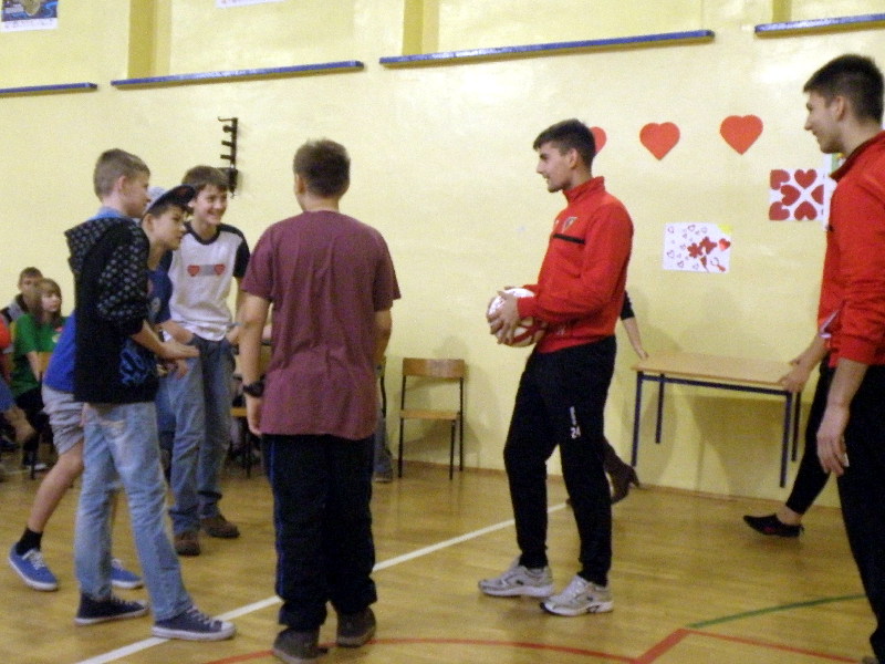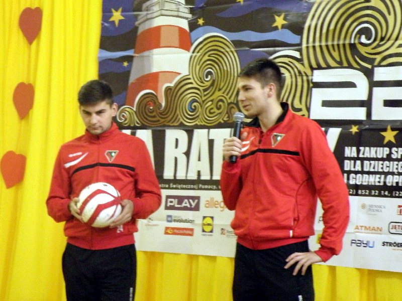 Oczywiście nasi zawodnicy na sam koniec zostali otoczeni przez uczniów i rozdali kilkanaście autografów, a także pozowali do zdjęć. Warto tutaj dodać, że po krótkim pokazie naszych zawodników, jeden z uczniów zaprezentował niebywałą technikę i niczym swego czasu David Beckham podrzucił sobie piłkę, złapał ją na łączeniu karku z plecami, a następnie nie zrzucając piłki na parkiet ściągnął koszulkę, za co oczywiście został nagrodzony brawami. - Byliśmy pod ogromnym wrażeniem umiejętności - mówił rozbawiony Dawid Weis. - Zawsze jest nam miło, gdy jesteśmy zapraszani na takie imprezy, w szczególności, że tutaj mogliśmy pomóc w zbieraniu pieniążków na WOŚP -dodał Paweł Grzywa.