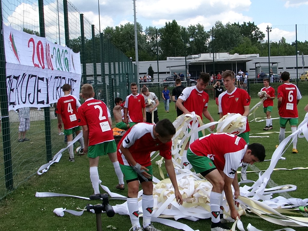 W ostatnim meczu rocznika 2000 rodzice i młodzi piłkarze z Akademii przygotowali podziękowanie dla trenera Grzegorza Bąka, który od przyszłego sezonu będzie prowadził rocznik 2003. Grzegorz Bąk na zakończenie współpracy wygrał ligę. Zdjęcia: