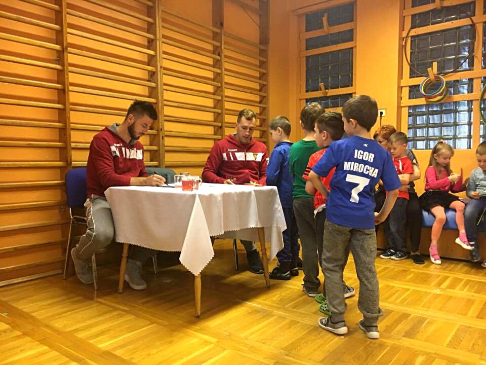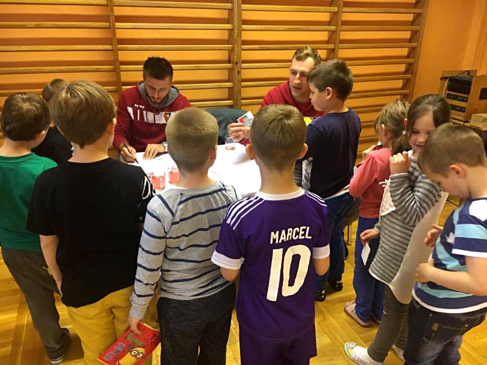 Kamil Wiktorski i Wojciech Łuczak odwiedzili Przedszkole nr 55 w Sosnowcu. Nasi piłkarze znaleźli się pod gradobiciem pytań młodych kibiców, dla których mieli zagłębiowskie kolorowanki i wlepki. Kilka zdjęć z naszej wizyty: