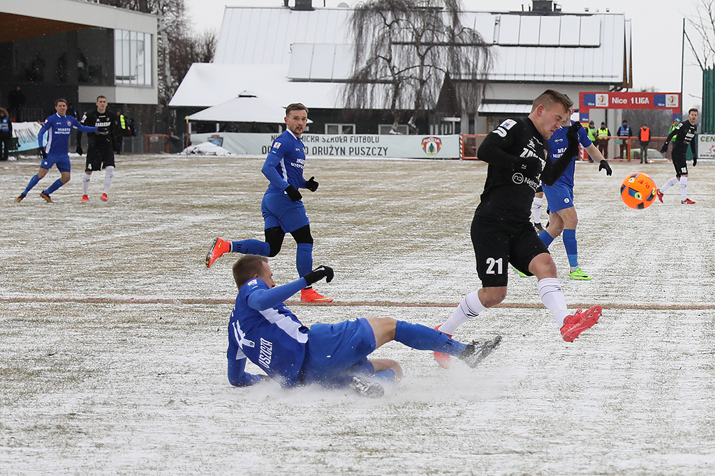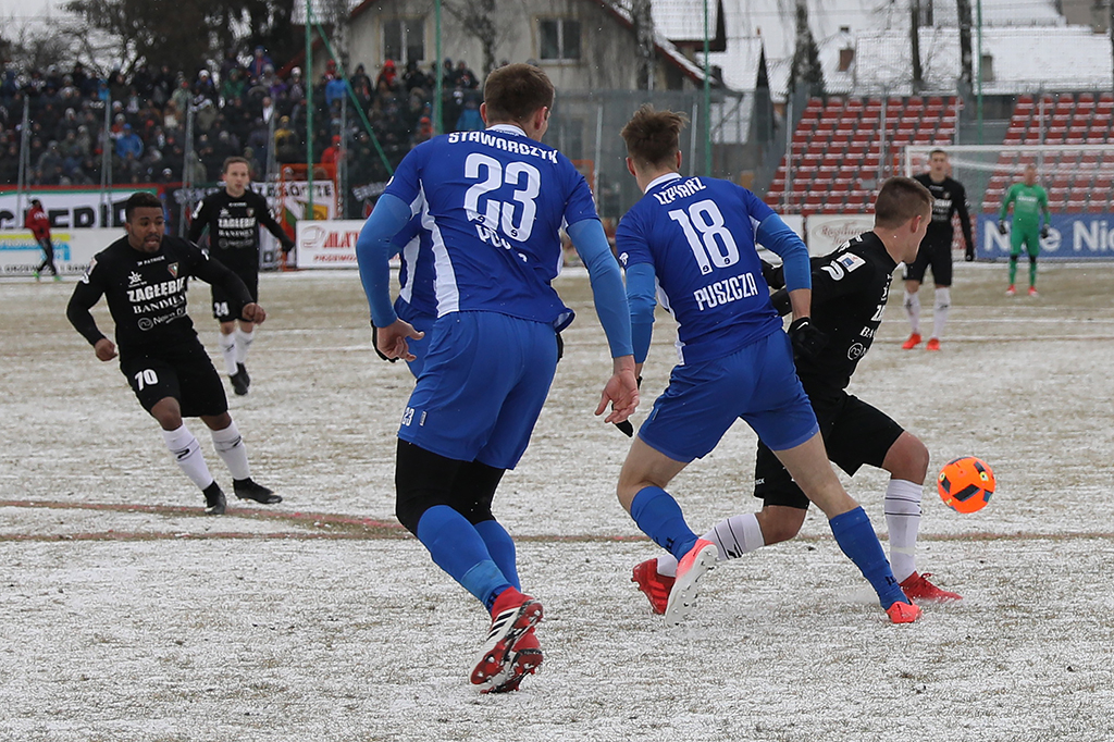 Przedstawiamy galerię zdjęć autorstwa Marka Rybickiego ze spotkania Zagłębia z Puszczą Niepołomice. Mecz zakończył się remisem 1:1.