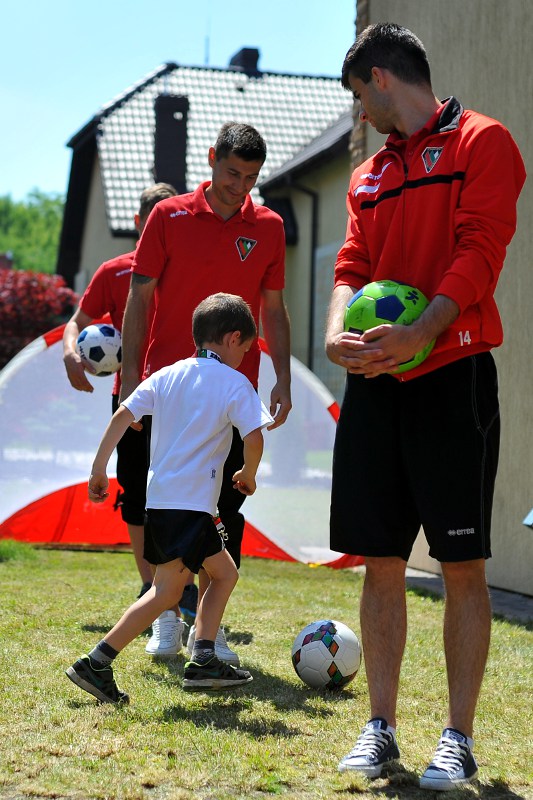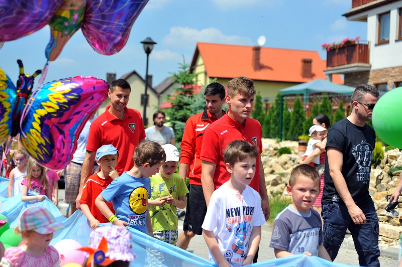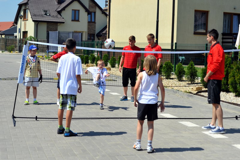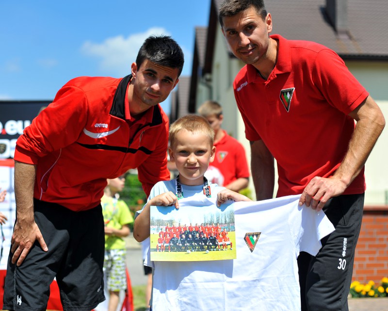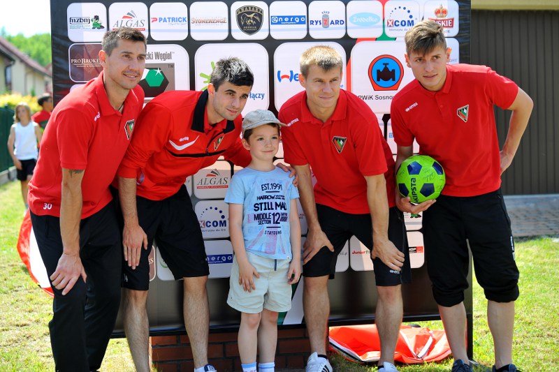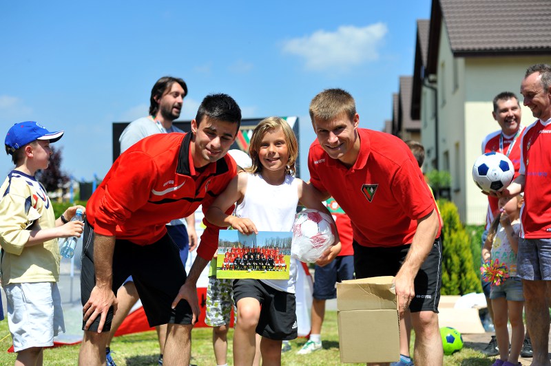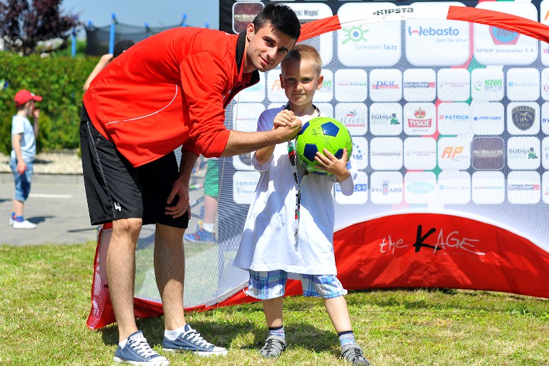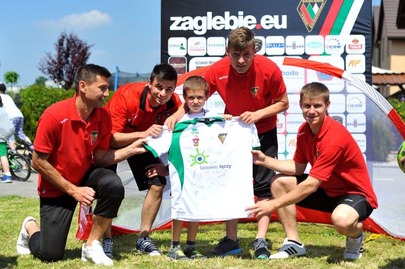 Pierwszy raz na tej imprezie stworzyliśmy punkt Zagłębia Sosnowiec, a w nim miejscowe dzieci zabawiali: Rafał Jankowski, Przemysław Mizgała, Michał Cyganek i Volodymyr Ostroushko. Nasi piłkarze przygotowali sporo atrakcji, oczywiście już na początku zostali otoczeni, więc zagrali krótki mecz. Następnie przeprowadzili konkurs dla bramkarzy, których było aż 3. Nie zabrakło również zawodów strzeleckich i w żonglerce. Najbardziej emocjonujący był jednak konkurs slalomu i strzałów do dwóch rozłożonych bramek, gdzie przeszkodami na boisku byli... nasi zawodnicy. Młodzi piłkarze świetnie sobie radzili, więc dla wszystkich były przygotowane nagrody i upominki. Na sam koniec przeprowadzony został konkurs z wiedzy o naszym klubie i regionie. Zwycięzcą okazał się Dominik, który w nagrodę został zaproszony na pokazowy trening pierwszego zespołu, a podczas niego będzie mógł zwiedzić nasz obiekt.