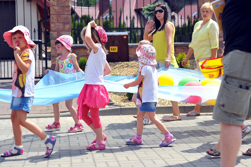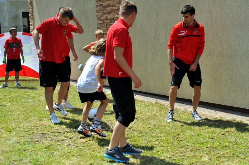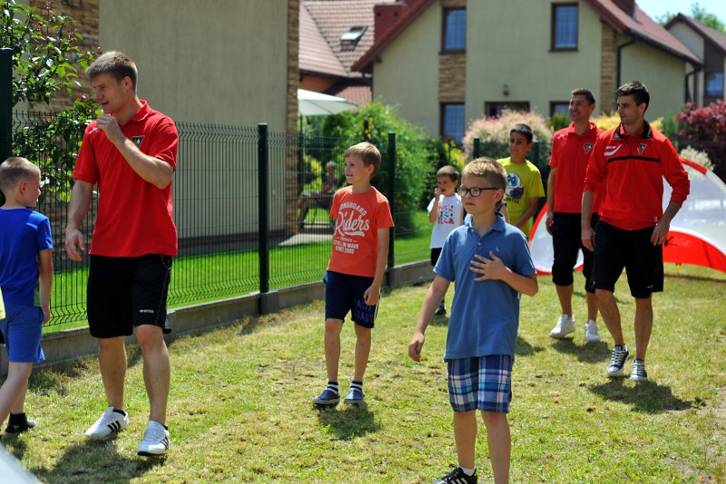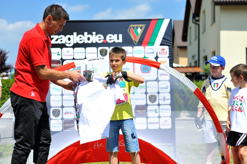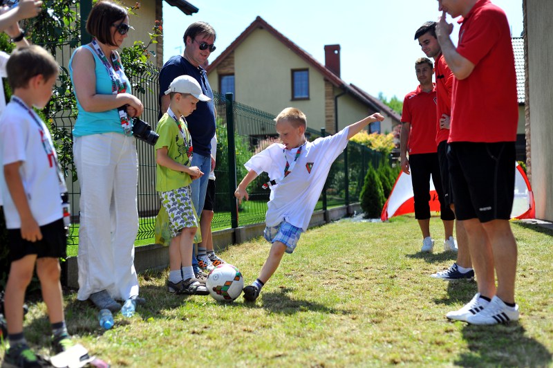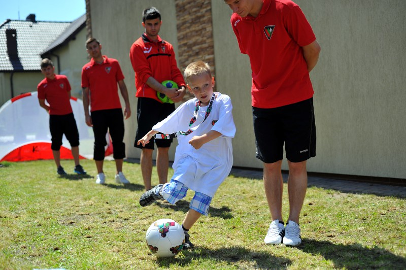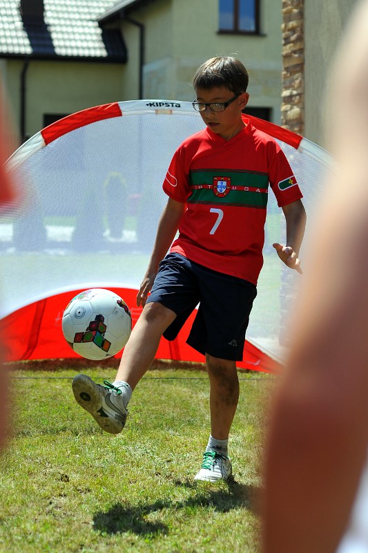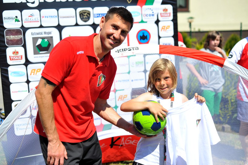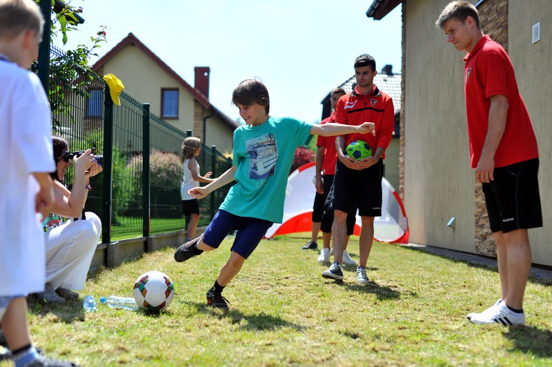 Pierwszy raz na tej imprezie stworzyliśmy punkt Zagłębia Sosnowiec, a w nim miejscowe dzieci zabawiali: Rafał Jankowski, Przemysław Mizgała, Michał Cyganek i Volodymyr Ostroushko. Nasi piłkarze przygotowali sporo atrakcji, oczywiście już na początku zostali otoczeni, więc zagrali krótki mecz. Następnie przeprowadzili konkurs dla bramkarzy, których było aż 3. Nie zabrakło również zawodów strzeleckich i w żonglerce. Najbardziej emocjonujący był jednak konkurs slalomu i strzałów do dwóch rozłożonych bramek, gdzie przeszkodami na boisku byli... nasi zawodnicy. Młodzi piłkarze świetnie sobie radzili, więc dla wszystkich były przygotowane nagrody i upominki. Na sam koniec przeprowadzony został konkurs z wiedzy o naszym klubie i regionie. Zwycięzcą okazał się Dominik, który w nagrodę został zaproszony na pokazowy trening pierwszego zespołu, a podczas niego będzie mógł zwiedzić nasz obiekt.