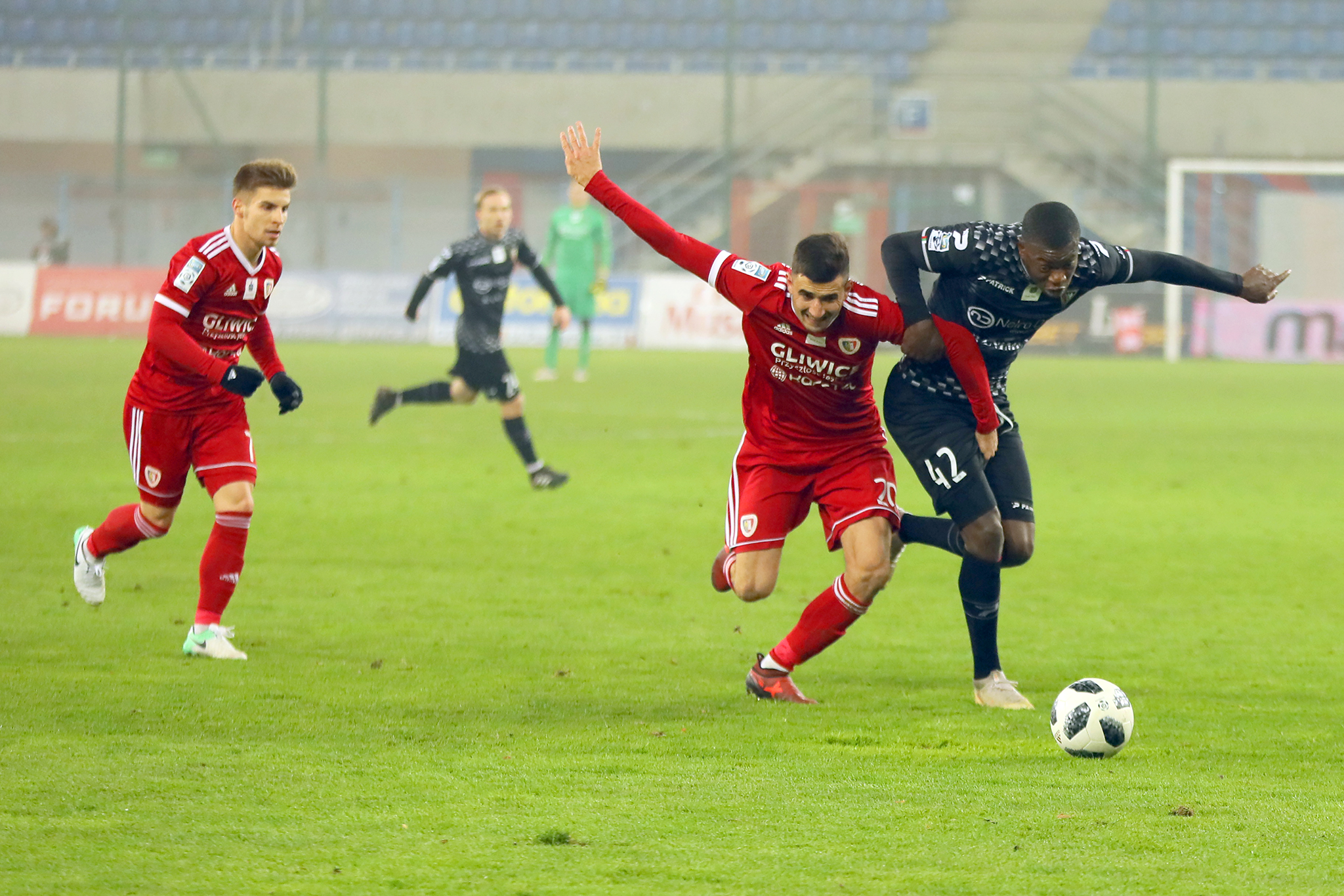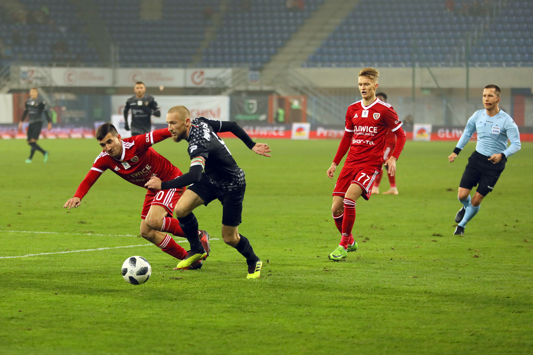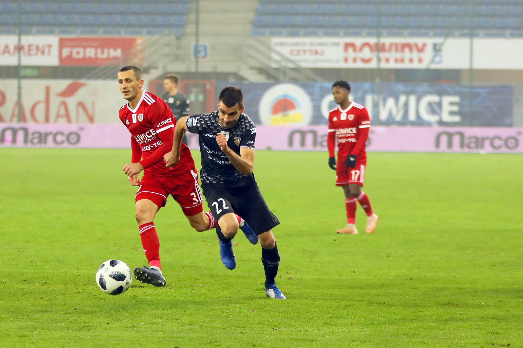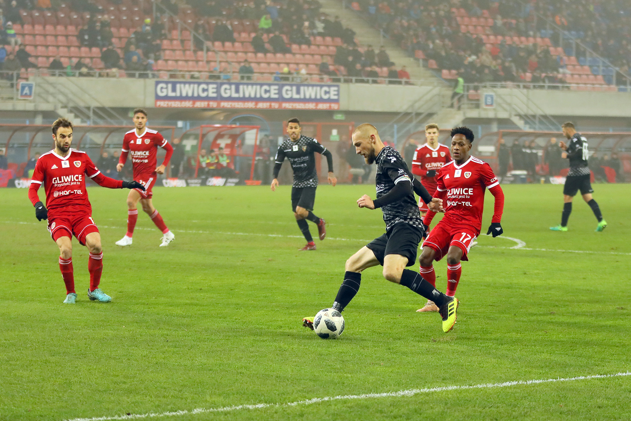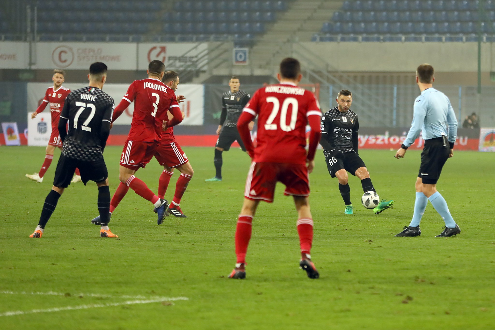Przedstawiamy zdjęcia z Gliwic, gdzie Zagłębie zremisowało bezbramkowo z Piastem. Spotkanie było wyrównane, a sosnowiczanie głównie liczyli na szybkie ataki.