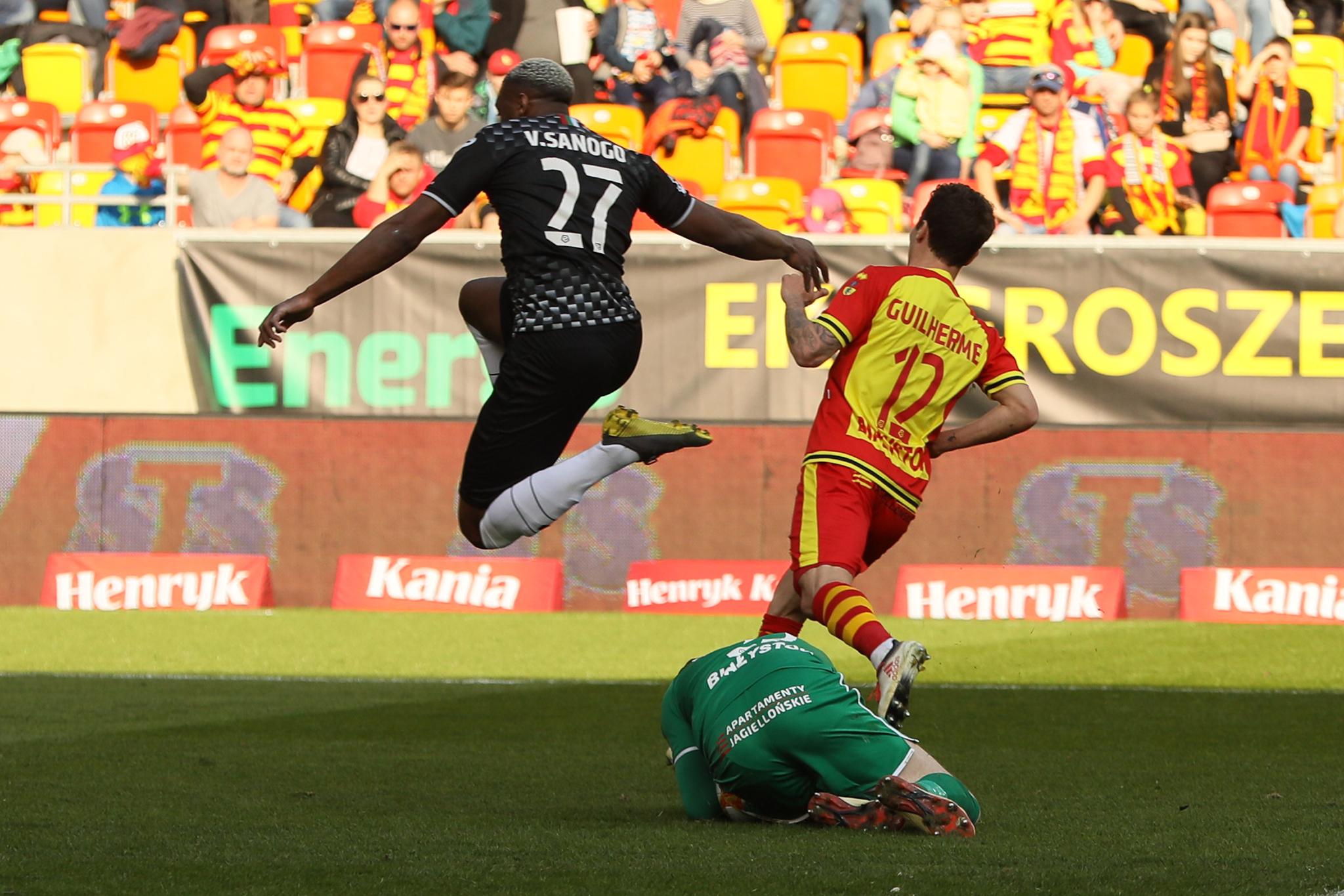 Przedstawiamy galerię zdjęć Marka Rybickiego z przegranego meczu Zagłębia z Jagiellonią 1:2. Honorowe trafienie dla sosnowiczan zdobył Vamara Sanogo, wykorzystując rzut karny.