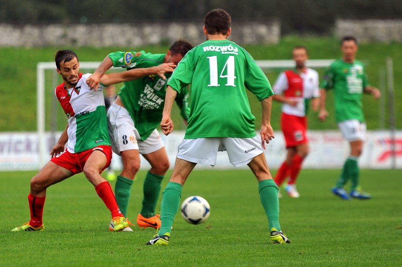 Po rzucie rożnym piłka trafiła na 18. metr na nogę Przemysława Mizgały, który bez zastanowienia huknął i otworzył wynik spotkania. Wydawało się, że nasi piłkarze utrzymają korzystny rezultat, jednak ostatni kwadrans należał do gości, którzy w ostatnie 15 minut strzelili aż 3 bramki. Duże kontrowersje wzbudziła pierwsza bramka, gdyż zawodnik Rozwoju ewidentnie sfaulował - wręcz brutalnie odepchnął dwoma rękami - w polu karnym Krzysztof Markowskiego. Sędzia nie odnotował tego faktu i puścił grę i piłka trafiła do siatki. Rozwój wygrał 3:1 i dopisał 3 punkty w tabeli.