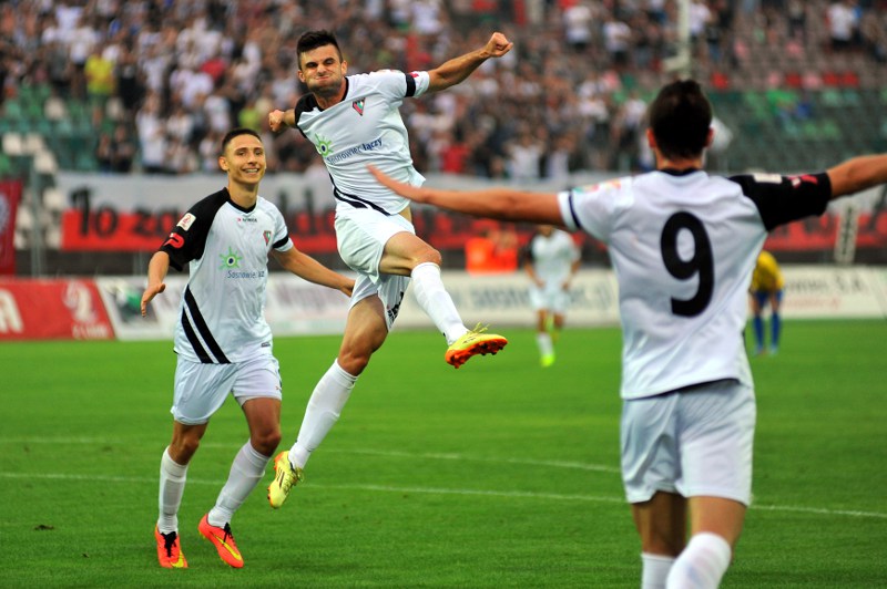 W 9. minucie Sebastian Dudek dośrodkował w pole karne, piłka zmierzała na dalszy słupek, Krystian Getinger postanowił wybić piłkę głową, jednak skierował ją do własnej bramki. Nasi piłkarze poczuli krew i postanowili pójść za ciosem. Chwilę później Dawid Ryndak precyzyjnie dośrodkował w pole karne, a tam na piłkę czekał Jakub Arak, który uderzył lewą nogą i zmieścił futbolówkę przy bliższym słupku. Nasz napastnik po upływie 5 minut ponownie utonął w objęciach swoich kolegów. W 15. minucie Sebastian Dudek przymierzył z rzutu wolnego, bramkarz wybił przez siebie, a tam był Jakub Arak, który chwilę wcześniej wyprzedził wszystkich obrońców i skierował piłkę do "pustaka". Wymarzony debiut wypożyczonego z Legii Warszawa napastnika, 2 bramki w przeciągu 5 minut... wielkie brawa. To nie był jednak koniec, podopieczni Mirosława Smyły dobili rywala w 22. minucie, gdyż Mateusz Wrzesień przedarł się lewą stroną i idealnie wrzucił na głowę Przemysława Mizgały, który podwyższył na 4:0.