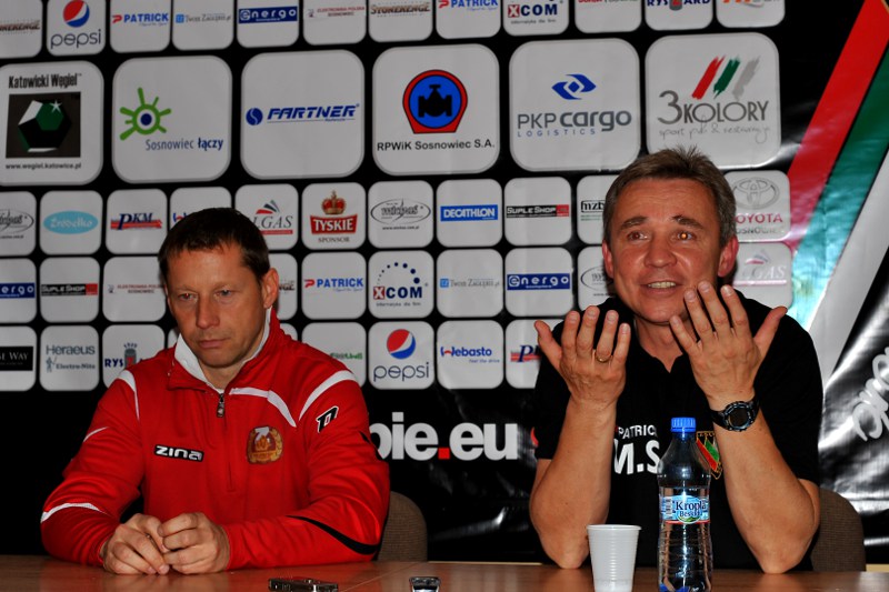 Mirosław Smyła (Trener Zagłębia Sosnowiec): – Przed meczem kilka osób będących bliżej klubu powiedziało : „Ale Ty jesteś szarlatanem, 7 zmian w składzie z poprzedniego meczu”. To ci, którzy nie widzą zajęć, determinacji chłopaków, którzy chcą walczyć o miejsce w składzie. Po meczu w Kluczborku można powiedzieć, że ten mecz był troszeczkę nudny, delikatnie rzecz ujmując. Trzeba było coś zrobić i obserwując chłopaków na zajęciach czy to wyrównawczych dzień po meczu, czy kolejnych, można było jednoznacznie stwierdzić – Ci chłopcy chcą grać. Stąd te 7 zmian, stąd decyzja o daniu szansy rezerwowym. Naszą siłą jest cała kadra i ci chłopcy pokazali w pierwszej połowie ogromną determinację, bo taki był cel, serce i wolę walki. Z góry można było założyć, że nie są w stanie całego meczu tak wytrzymać, dlatego w 60 minucie zmiana. Trzeba powiedzieć, że przeciwnik mimo tego, że grał w 10, stworzył w drugiej połowie dosyć trudne warunki i trzeba było naprawdę ciężko pracować, aby ten mecz wygrać. Szukanie w tej chwili jakiś cudownych opinii po tym spotkaniu jest zbyteczne. Zobaczyliście państwo mecz, w którym jeden zespół mógł strzelić bramkę z rzutu karnego, nie strzelił. Często bywa w piłce, że niewykorzystane sytuacje się mszczą i tak się stało w tym meczu. Wpadły te bramki w naszym wykonaniu, wydawało się, że jest po meczu, ale jak zwykle piłka jest przewrotna i pokazała, że nie było po nim. Trzeba było do ostatniej minuty, mimo stworzonych później sytuacji, walczyć. Mogliśmy strzelić kilka bramek, ale no niestety piłka lubi takie przewrotne sytuacje i jedyne czego się obawiałem, to to, że zemści się na nas brak skuteczności. Dowieźliśmy te 3:2, to jest najważniejsze, zwycięstwo, drużyna w tej chwili ma przed sobą chwilę odpoczynku, później przygotowania do kolejnego meczu u siebie z Kotwicą. Przypomnę, że Kotwica dzisiaj zremisowała z Kluczborkiem. My cały czas i tu się powtórzę, budujemy i nie zejdziemy z tej drogi. Wielu chłopaków udowodniło, że chcą w tej drużynie być, chcą rywalizować, chcą walczyć o miejsce. Cieszę się, że mam taki fajny, ciekawy zespół. Wierzę w to, że będziemy z każdym kolejnym tygodniem czy miesiącem grać po prostu lepiej.